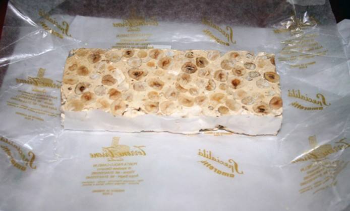 Ingredienti semplici caratterizzano questo torrone che al gusto mostra una piacevolezza infinita , merito della tostatura perfetta delle nocciole. A guardare gli ingredienti potrebbe sembrare stucchevole ma Vi assicuro che non è lo proprio.