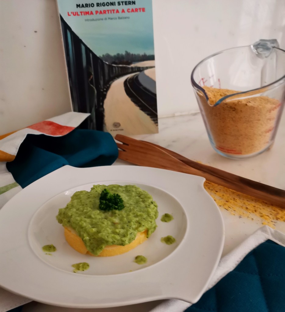 Semplice è anche la mia ricetta: “Polenta con crema di broccoli e caprino”, la polenta che porta il calore della famiglia e dell’amicizia, la crema di broccoli con il suo colore per ricordare i bellissimi prati dell’altopiano di Asiago e il Caprino in onore alla tradizione casearia del Veneto.