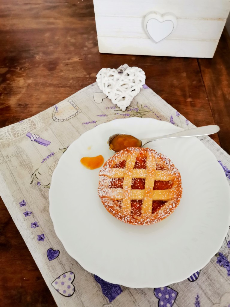 A cottura ultimata, sfornate le vostre crostatine alla marmellata, lasciatele intiepidire e poi rovesciatele per sformarle e servitele con una spruzzata di zucchero a velo.