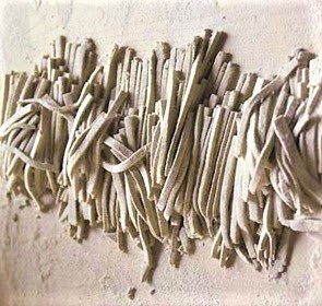 Sovrapponete le fasce e tagliatele nel senso della larghezza, ottenendo delle tagliatelle larghe circa 5 millimetri.