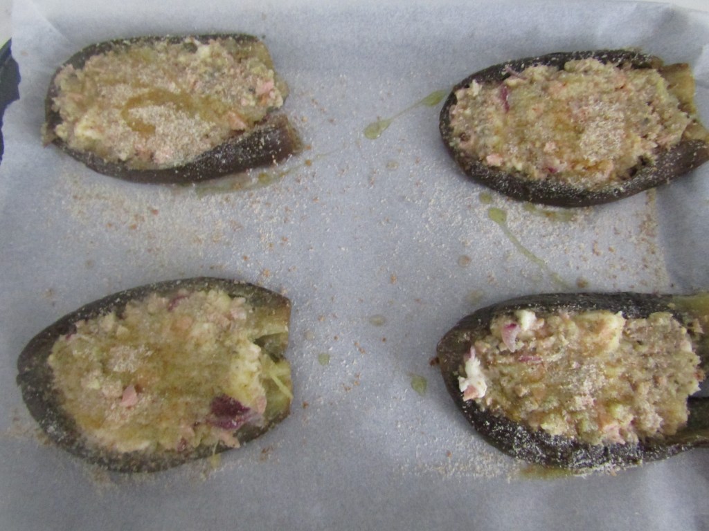 Disponete le verdure sulla teglia del forno e farcitele con il composto ottenuto, cospargetele con il pane grattugiato e infornate a 180° per 15 minuti.