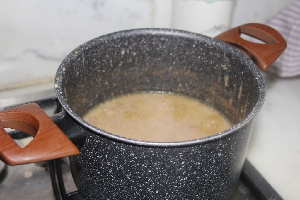 Passato questo tempo e verificato che i fagioli siano ben cotti, togliete le croste di formaggio tenetele da parte e passate tutto in un passaverdure.