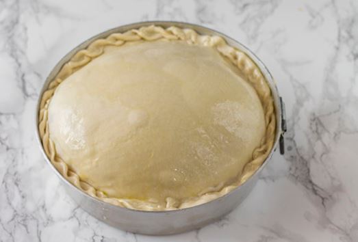 Prendete le sfoglie di pasta rimaste e adagiatele una sopra all’altra ungendole prima di posizionarle. Esaurite le sfoglie, premete sul bordo, tagliate la pasta eccedente e ripiegate verso l’interno i margini in modo da formare l’orlo. Ungete l’ultima sfoglia e cuocete in forno a 190 ° finchè la pasta non sarà bella dorata. Sarà supergustosa !